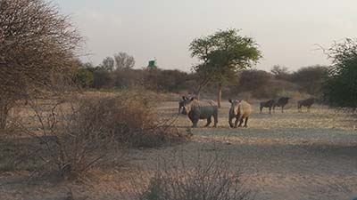 As we were driving along we came upon a waterhole and saw these rhinos. |