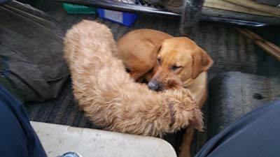 On all day hunts in the field, we take a noon siesta time. Here you see how Jenny got the nickname "Handkerchief" |