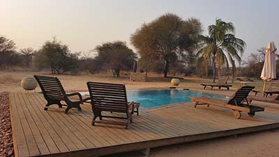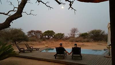 Amazing pool environment with giraffes and warthogs roaming around while we sit and enjoy the sun. Remember they are more afraid of you than you are of them. |