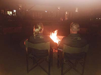 It's a romantic night by the fire....talking about the day. Here are Jenny and Al...listening to the sounds of nature around us. |