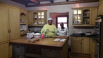 Riana van Aswegen runs the lodge with great care. We are encouraging her to write a cookbook of all her game recipes. She is Henk's and Riaan's mom. Dolla Jacobs is Henk Jacobs wife. It was so fun to talk to her. |